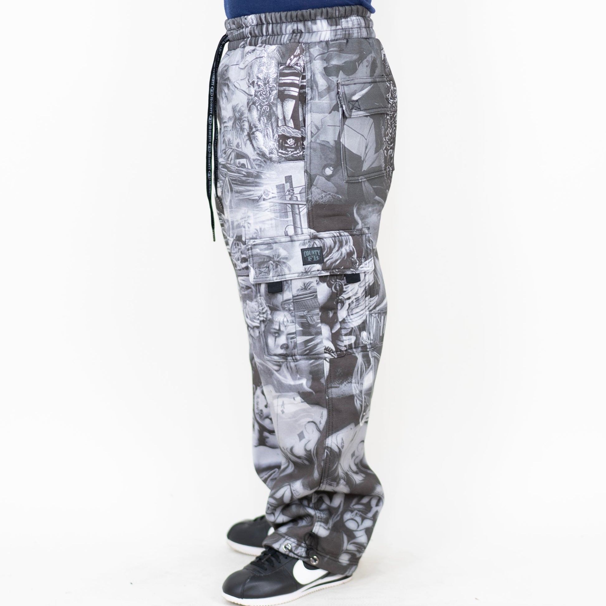 The Famous FB County OG Tatted Lifestyle Cargo Sweatpant is finally here! Featuring an All-Over-Print design on both legs. Cop them before they sell out!